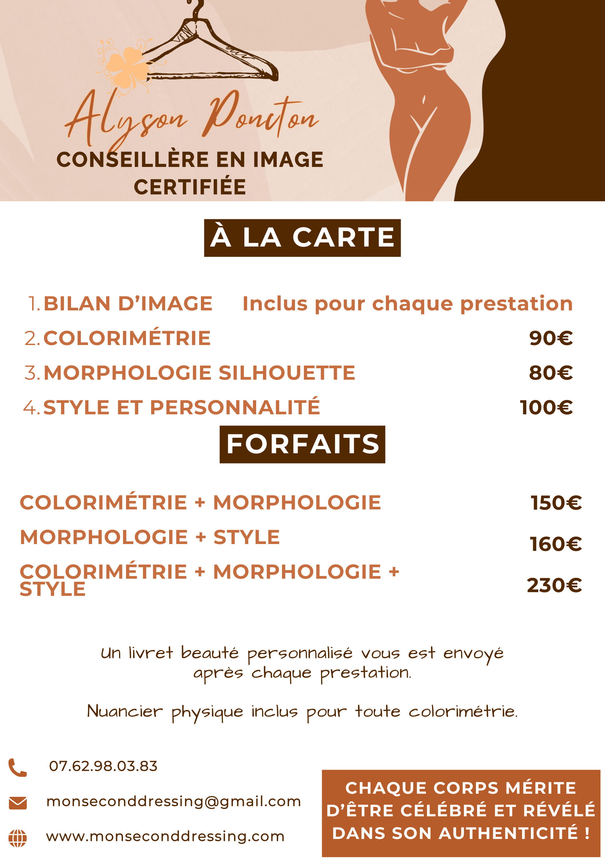 Chaque prestation est pensée pour vous, avec bienveillance et professionnalisme, afin que vous repartiez avec des conseils concrets, des looks qui vous font plaisir et surtout une confiance retrouvée en vous-même.